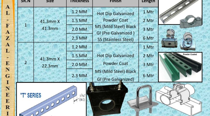 Introduction Alfazal Engineering brings you top-quality UNI Strut Channels and Accessories in Pakistan. These versatile components play a crucial role in construction and electrical projects. UNI Strut Channels act as a sturdy framework, providing support for various installations. At Alfazal Engineering, we understand the importance of reliable infrastructure, and our products are designed to meet […]
